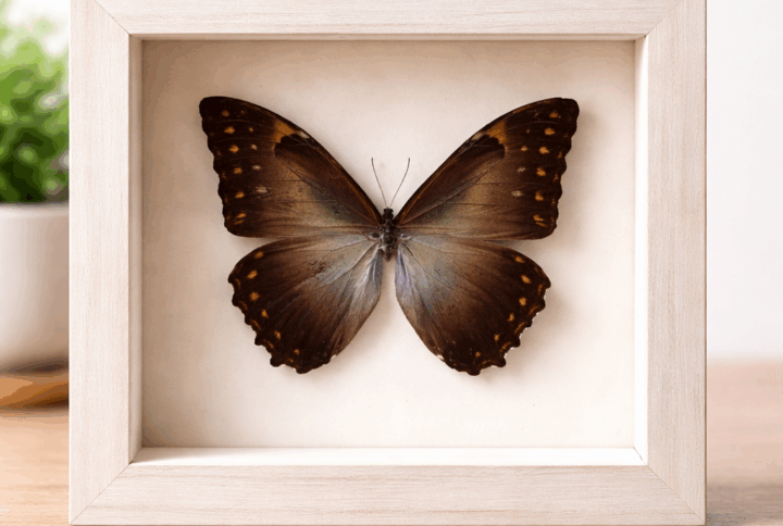 Πραγματική μπλέ ριγέ πεταλούδα προερχόμενη από τα δάση του Αμαζονίου! Το μπλέ τονίζεται διαφορετικά, ανάλογα με το φως, γι’ αυτό ονομάζεται και Morpho.